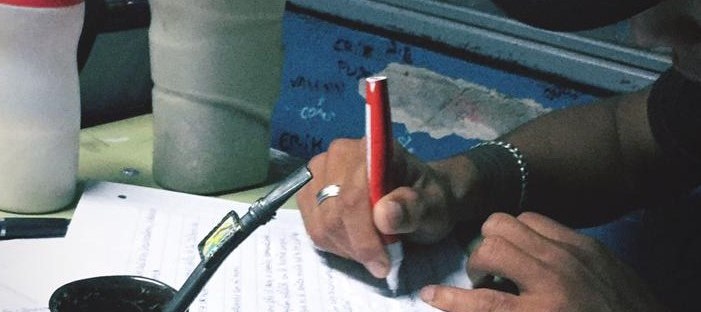 La unión de este grupo también se afianza en cada mate que comparten, y para eso todos los días se organizan. Algunos se ocupan de tener siempre listo su equipo, otros llevan galletitas o snaks, Así, entre cebada y cebada, van copiando del pizarrón o escuchando a los profesores. Un termo no alcanza, por eso Verónica -la auxiliar del turno vespertino- se ocupa de tener el agua a punto. Ese mate, además, los mantiene con la mente estimulada y el hambre entretenido.