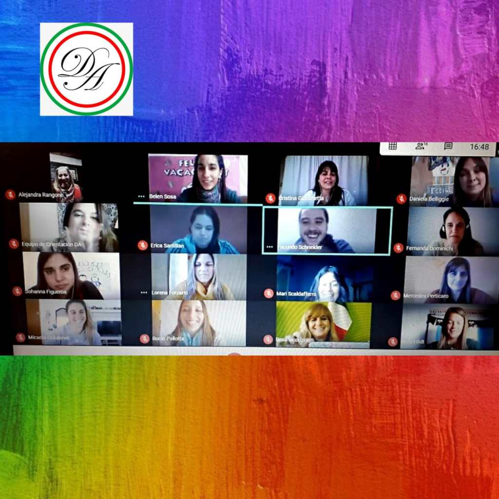 Entonces incorporamos los encuentros virtuales, nuestras casas se acondicionaron para encontrar ese lugar para esperarlos, para encontrarnos con ellos y poder abrazar, contener y transmitir todo nuestro trabajo y amor a través de los celulares y computadoras. Les aseguro que el corazón nos late muy fuerte cuando vemos que comienzan a conectarse y las pantallas se transforman en las caritas de cada uno de nuestros alumnos, ni hablar cuando la computadora nos indica que se está perdiendo la señal o se “está por cortar internet”.